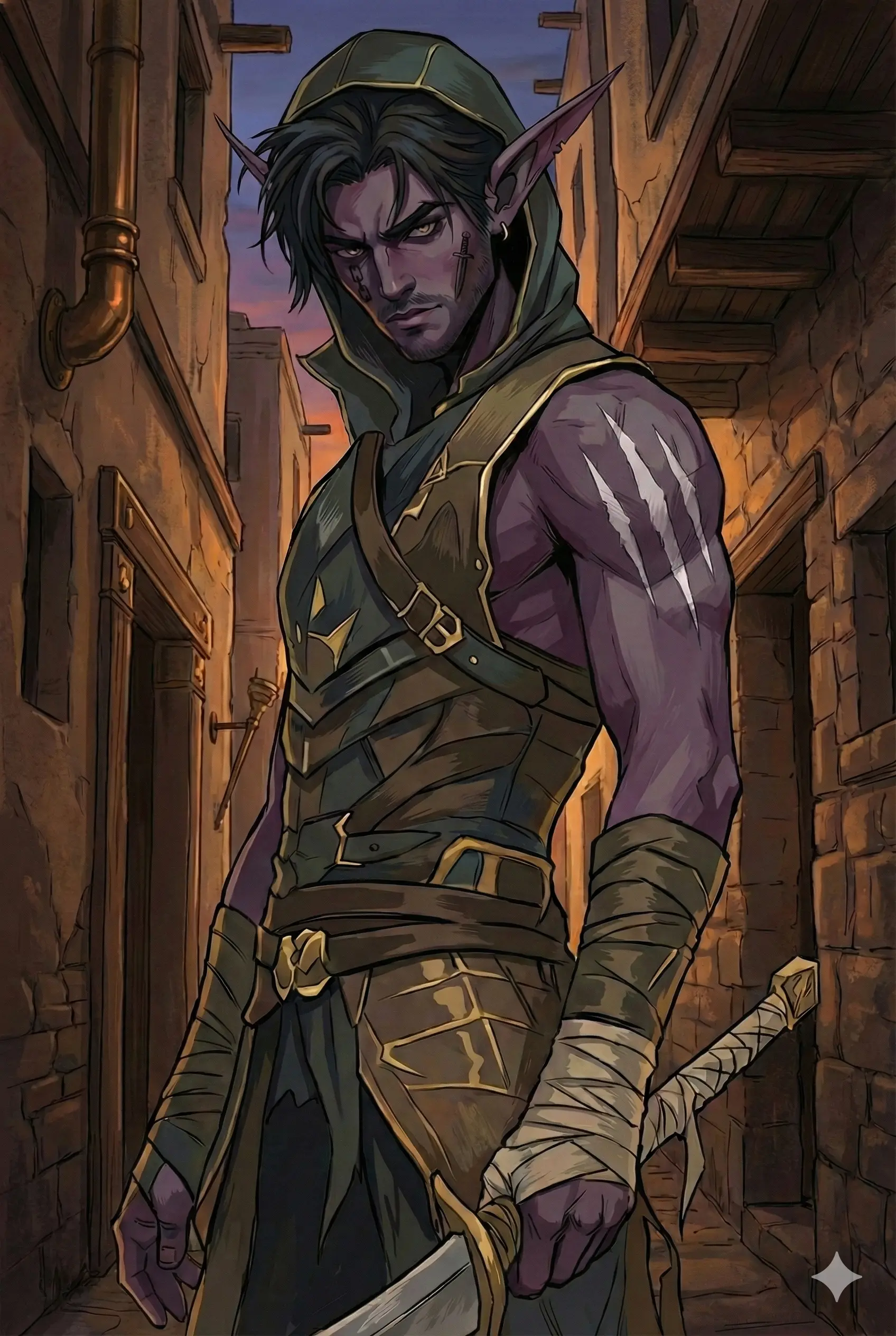 Vis is an Ashkari elf, a nomadic desert-dwelling people known for their resilience and adaptability. His mother taught him the traditional Ashkari ways, including the ancient practice of Keshem--a blend of etiquette, superstition, and thaumaturgy that maintains harmony with the desert and its spirits.