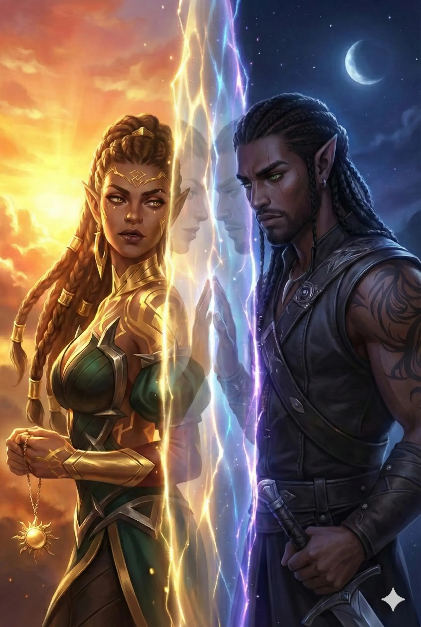 In time, they realized what their new fate would be. By night, Nua would be alive, and Nia was all but dead. By day, the reverse. They shared one body, but two minds; none had the memories of the other's time in the sun or night. They were two halves of a whole, and they had to learn to coexist in this new form. They were both alive and well, but could never again be together. The Sorcerer-King had wanted this--a fate worse than any they'd ever imagined. And yet, in this curse, there was a glimmer of hope: they could find ways to communicate, to coordinate their efforts, and perhaps even find a way to break the curse. They were determined to make the best of their situation, and to find a way to be together again, even if it meant defying the Sorcerer-King himself.