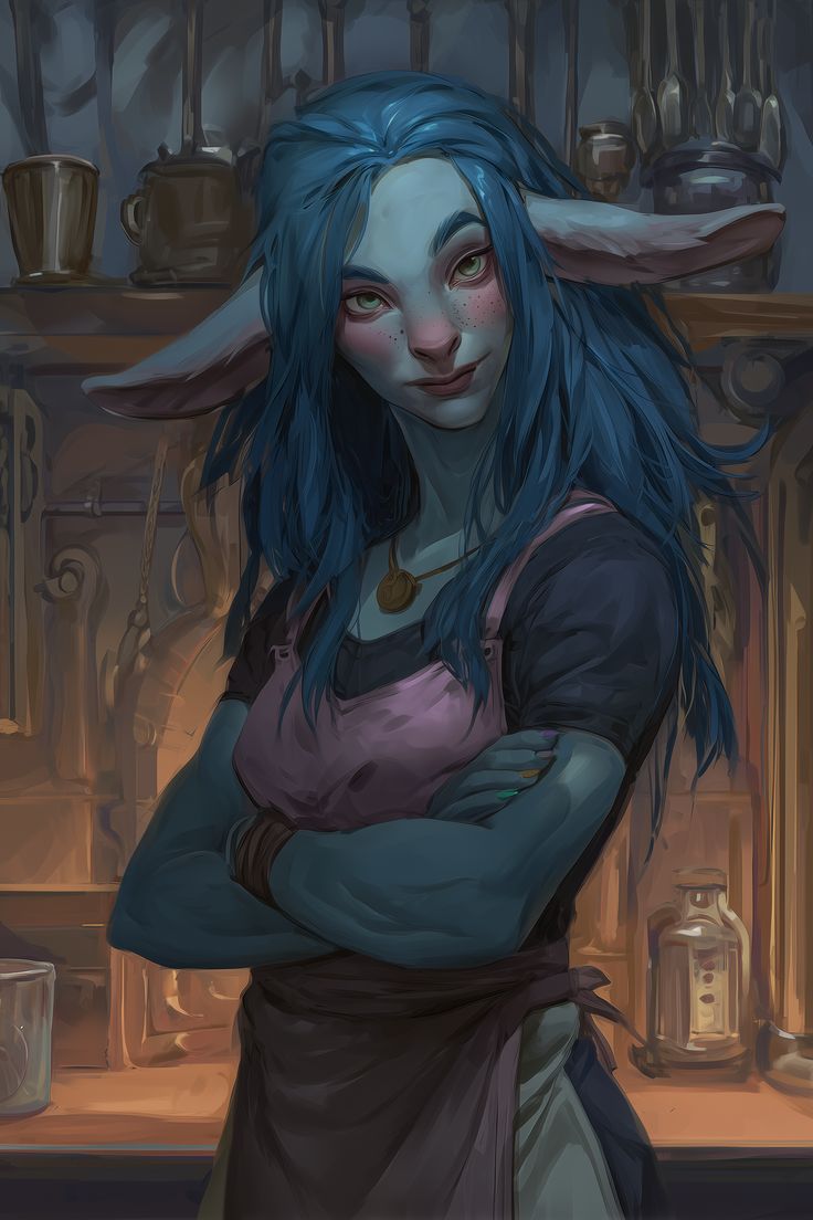 Cavallah | Bartender, counselor, and commander of the very elements themselves | Female firbolg, age 69, height 7'8" |