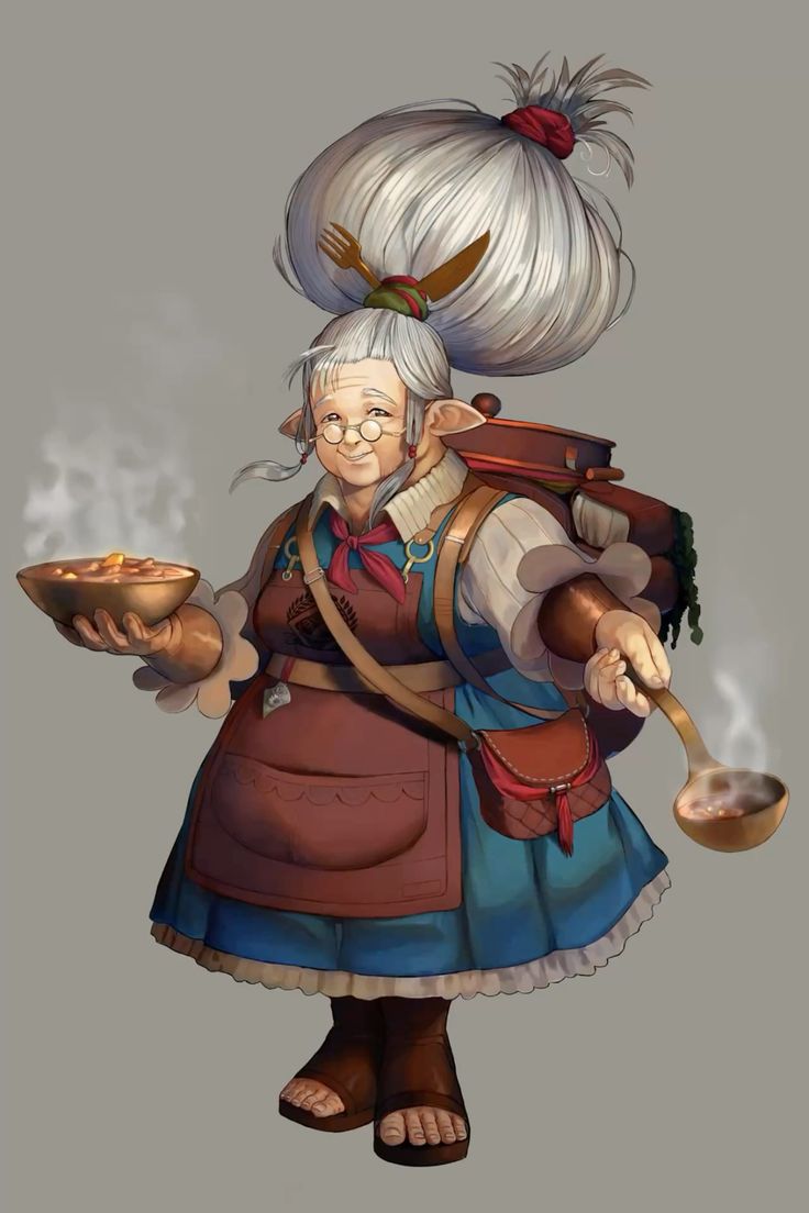 "Momma" Brigh Boromar | Conall's mother, the brains of the operation, makes AMAZING stews | Female halfling, age 85, height 2'10" |