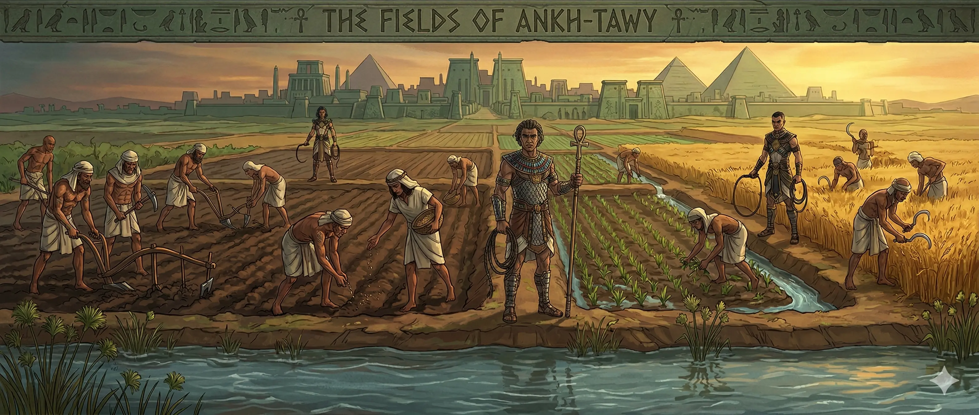 The lifeblood of Kalidnay's economy is agriculture. The city's location on the former fertile flood plains gives it rich soil for the cultivation of crops of every sort, provided the Pharaoh can bring the water needed to irrigate them. Many fruits and spices grow here, but the dominant crops are faro grain and kank honey, which are exported across the Tablelands in large quantities. The city also produces a significant amount of erdlu eggs, which are prized for their nutritional value and unique flavor.