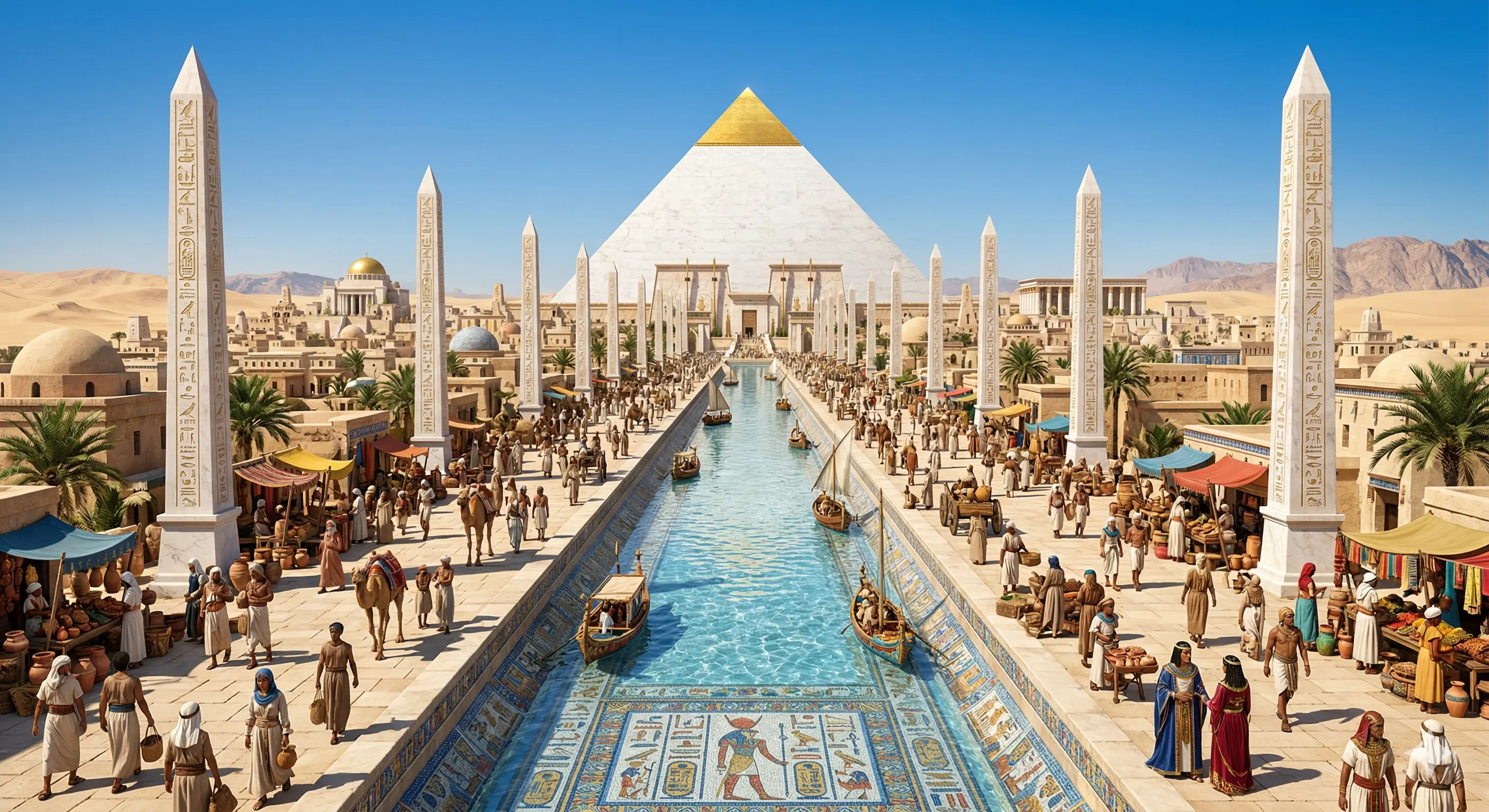 In the Green Age, the now-dry Kamat River expanded into a delta in this region, where it met the Obsidian Sea. The city was built on the fertile flood plains of the delta, with canals and irrigation systems drawing water from the river to sustain agriculture. The surrounding area was lush and green, with abundant wildlife and vegetation.
