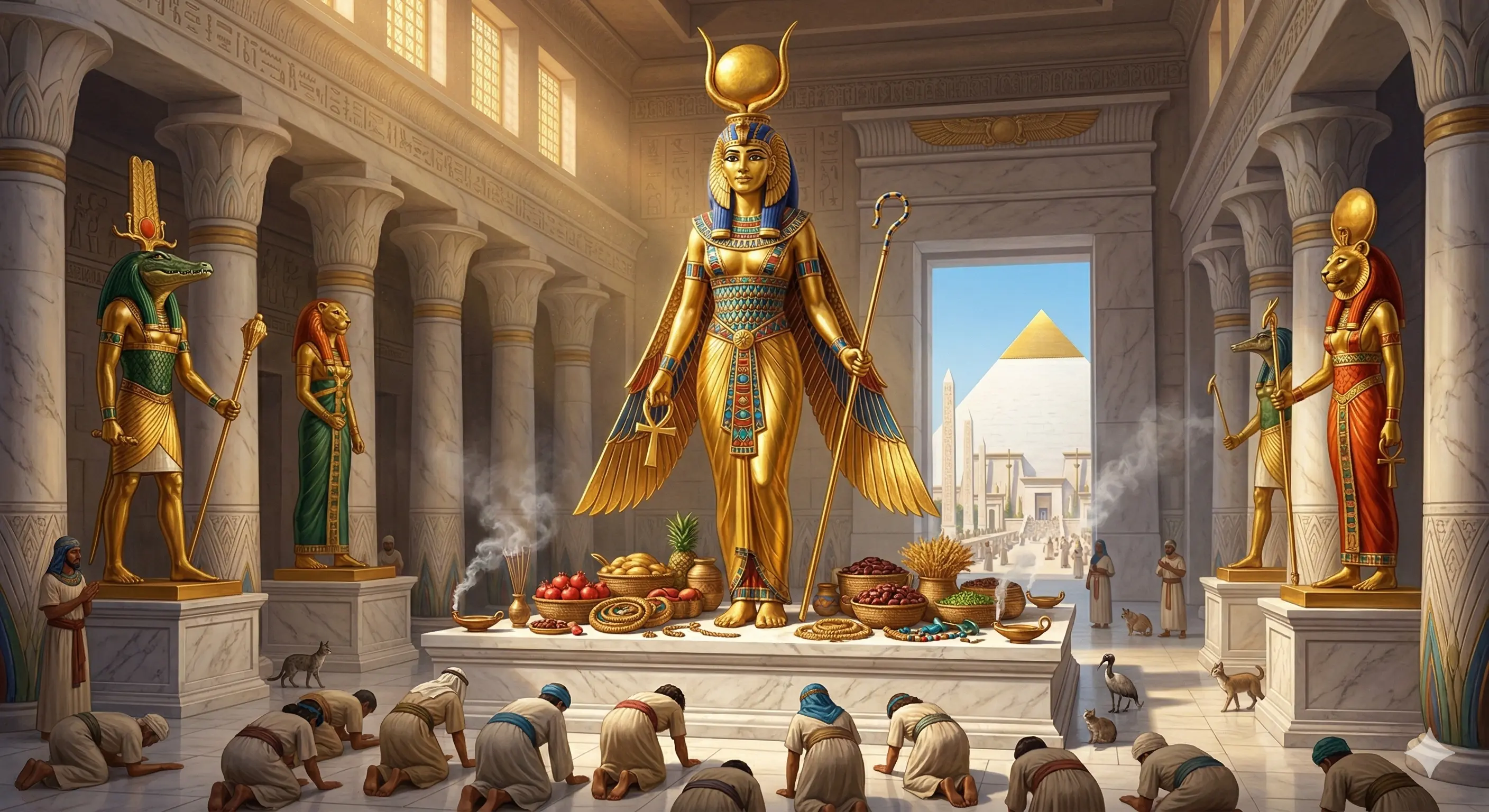 The massive temple is capable of hosting literally the entire city's population in its main courtyard, and it does so regularly for festivals and ceremonies. The temple is also the headquarters of the clergy, who wield significant political power in the city. The high priestess of Kalid-ma is second only to Pharaoh Ka-Tet in terms of influence and authority. The temple is also a center of learning and scholarship, with a vast library containing ancient texts and knowledge about Kalid-ma, her avatars, and the history of the city--accessible only to the faithful, of course.