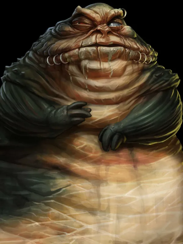 A morbidly obese Hutt gangster and trader in spices, gemstones, and luxurious exotics who maintains a shadow network of informants across Tion space from his oasis villa and fortress on Endregaad. Suspected to have powerful friends within the Cluster.