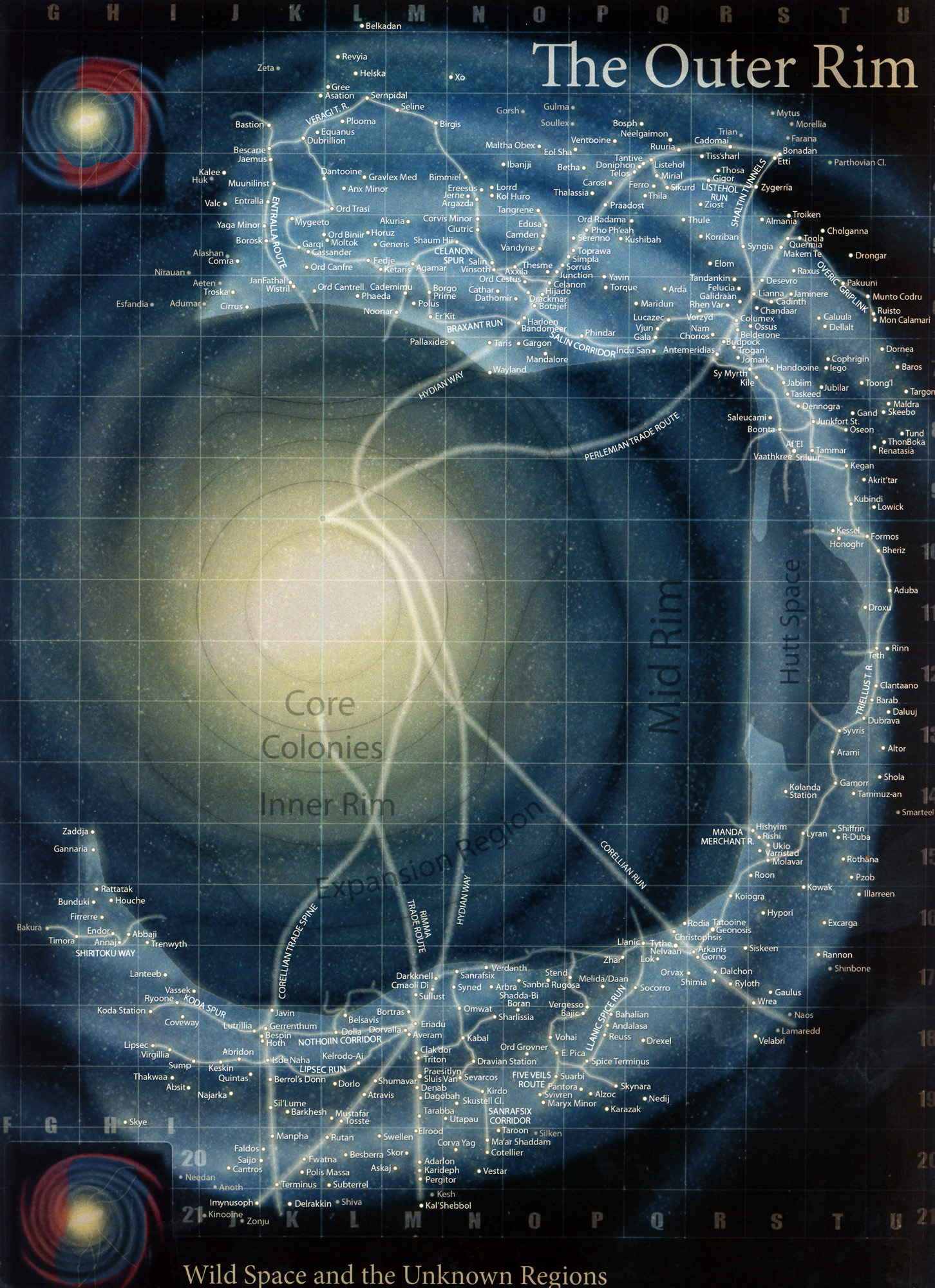 The Outer Rim Territories, simply known as the Outer Rim, were located outside the Mid Rim. The Outer Rim was the least widely settled and explored expanse of the galaxy before Wild Space and the Unknown Regions. The largest region in the galaxy, it was strewn with diverse worlds, and rugged, primitive frontier planets.