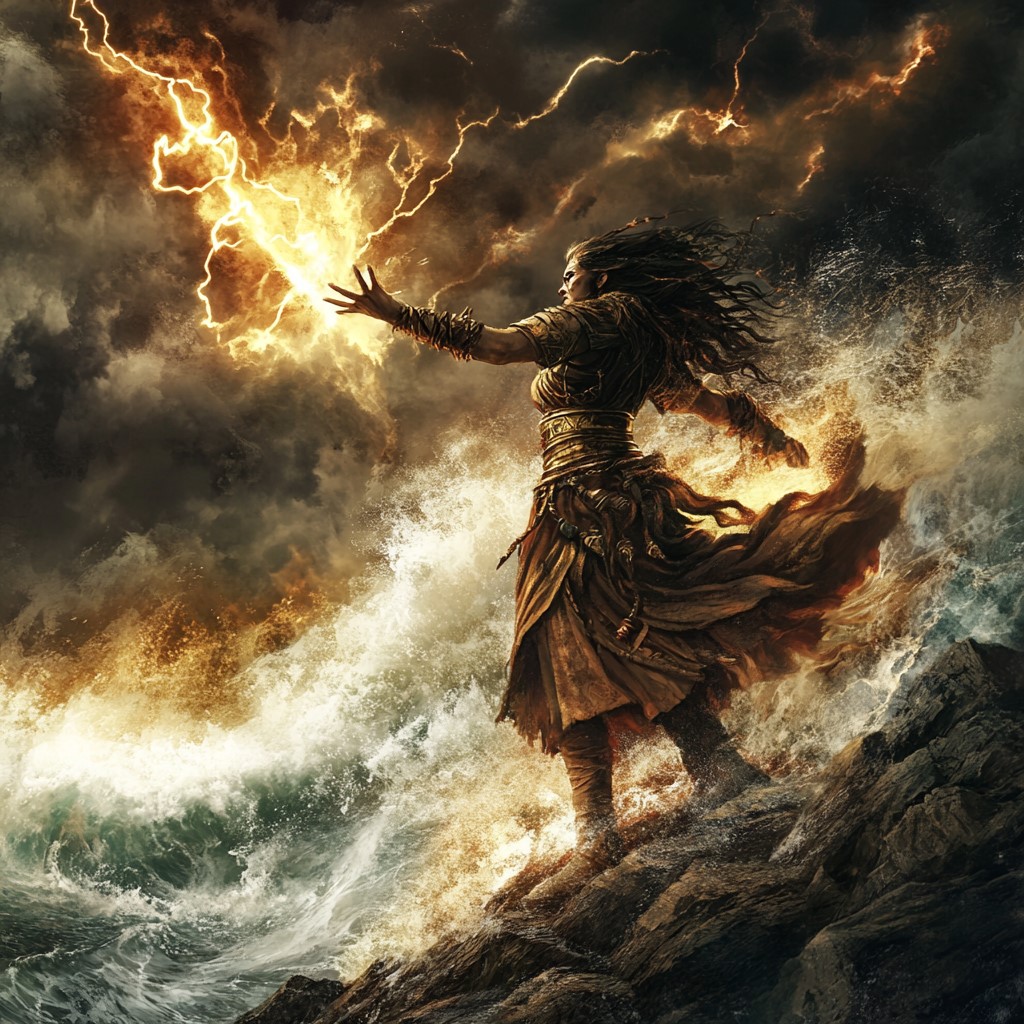 - Crash Lightning: at-will, std, cone 4, mana 1; medium lightning damage plus push 5 (Str half).